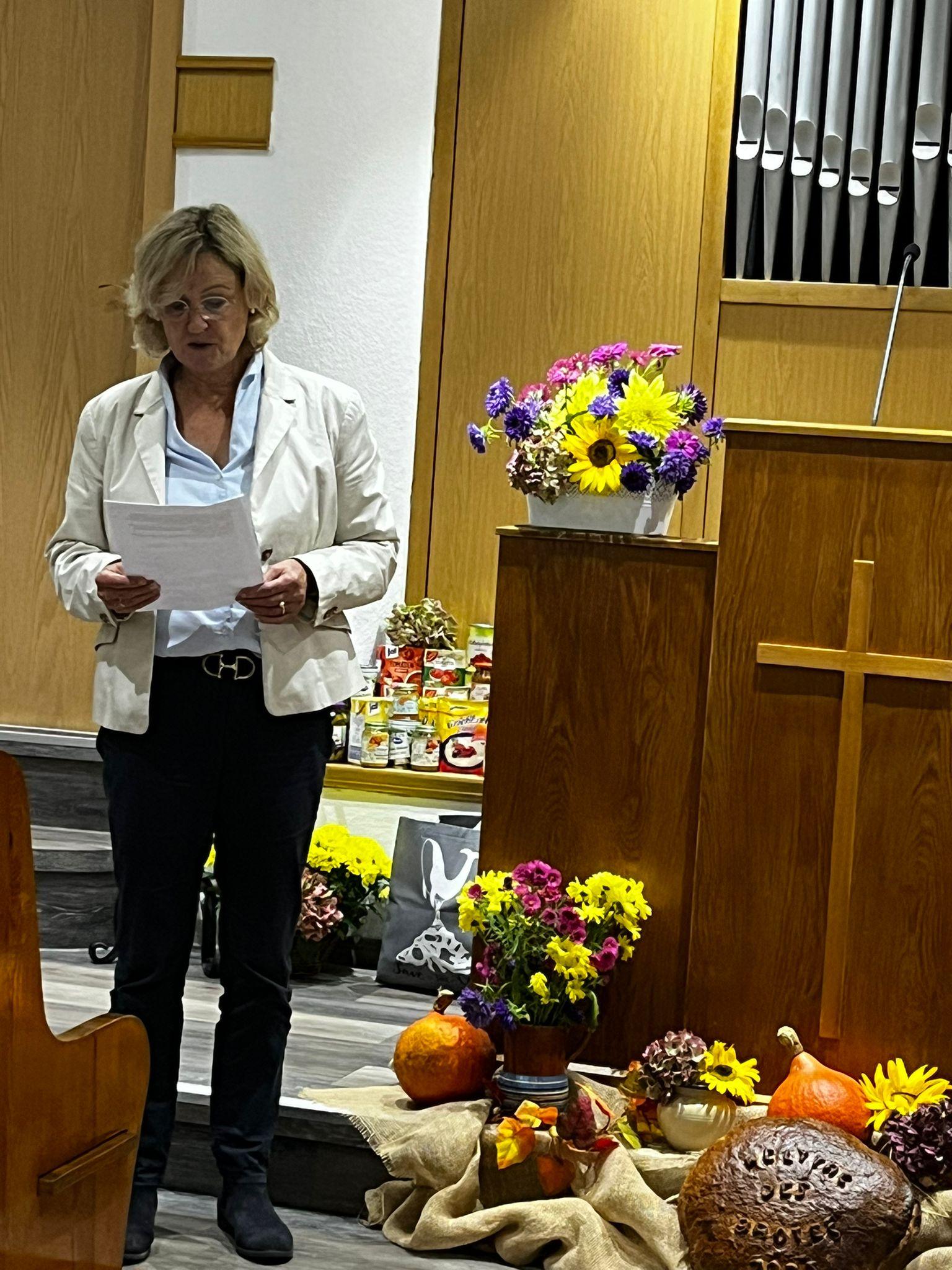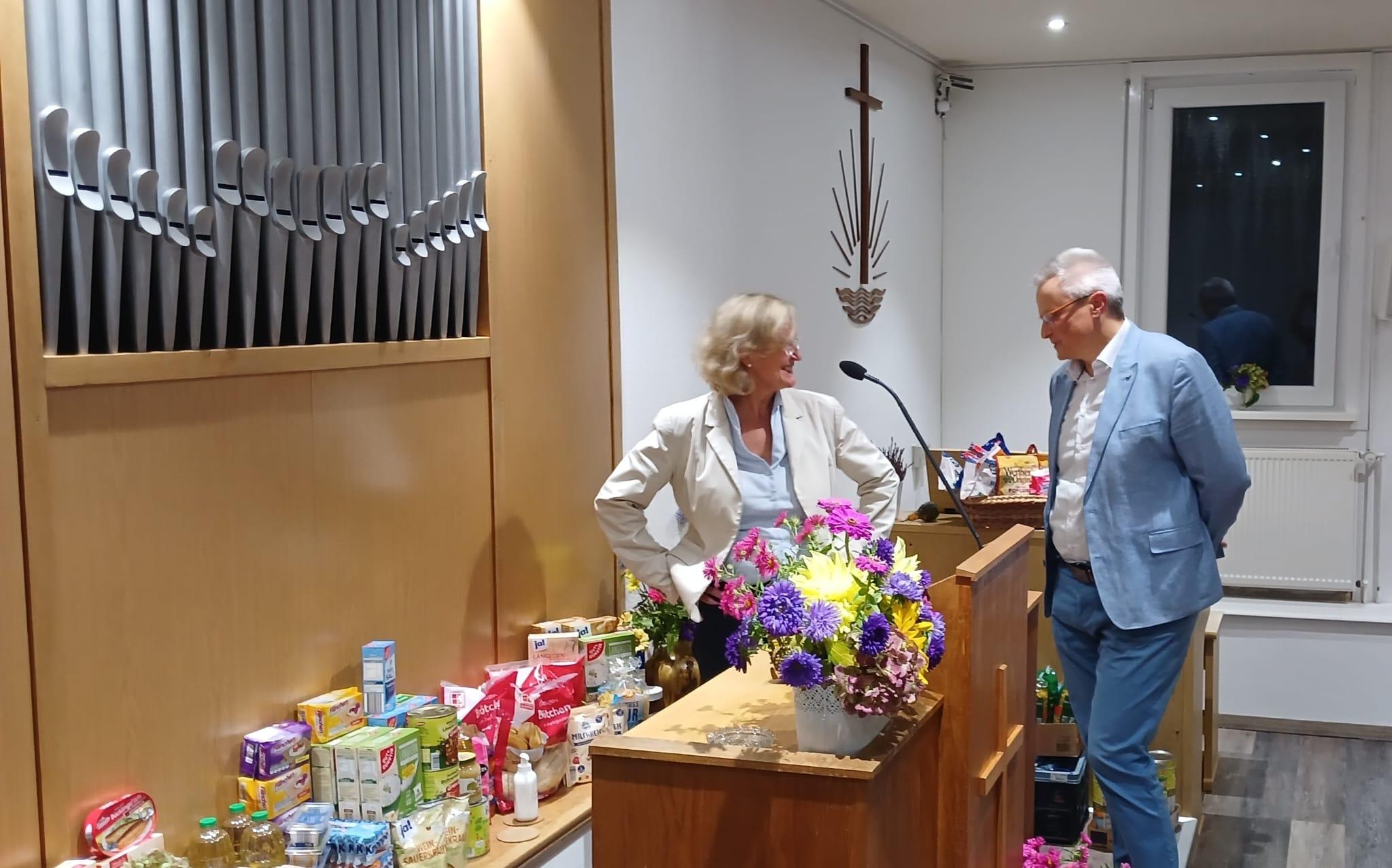 Dieses Jahr sollte die Spende mit einer kleinen Feierstunde am Welternährungstag, dem 16.10. in unserer Kirche übergeben werden. Unser Vorsteher konnte die Vorsitzende der Tafel e.V. Havelland Frau Meier-Ewert dazu herzlich begrüßen und ging auf unsere christliche Einstellung zu Hungerden, Armen und Obdachlosen zu helfen ein. Frau Meier-Ewert gab uns einen Einblick über die Arbeit der Tafel, so werden z.B. in Premnitz ca. 30 Haushalte unterstützt und da ist jede Spende willkommen.